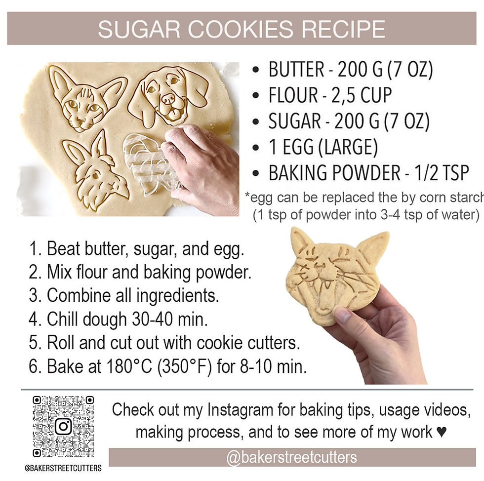 Shop Bengal, Tabby, Siberian, and more cat breed cookie cutters. Each design is made with care, featuring precise details and created to order for every cat lover